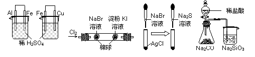 左烧杯中铁表面有气泡,右边烧杯中铜表面有气泡 |