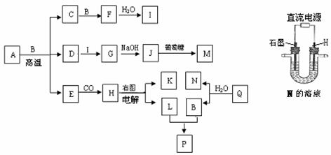 27.(14分)已知A是由三种元素组成的离子化合物,在一定条件下发生如下图所示的变化(部分转化的反应物、生成物及反应条件均已略去),C是形成酸雨的主要大气污染物,常用I的产量来衡量国家化工发展水平。其中Q是淡黄色固体,P是红褐色沉淀, J → M的反应在医学上常用作尿糖的测定。请回答下列问题: