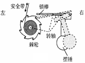 如图所示是一种汽车安全带控制装置的示意图.当汽车处于静止或匀速直线运动时,摆锤竖直悬挂,锁棒水平,棘轮可以自由转动,安全带能被拉动.当汽车突然刹车时,摆锤由于惯性绕轴摆动,使得锁棒锁定棘轮的转动,安全带不能被拉动.若摆锤从图中实线位置摆到虚线位置,汽车的可能运动方向和运动状态是
