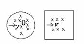 如图所示,两个横截面分别为圆和正方形,内部有磁感应强度大小均为B,方向均垂直于纸面向里的相同匀强磁场,圆的直径D等于正方形的边长,两个带电粒子以相同的速度V分别飞入两个磁场区域,速度方向均与磁场方向垂直。进人圆形区域的电子速度方向对准了圆心,进入正方形区域的电子是沿一边的中心且垂直于边界线进入的,则