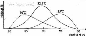 6、在不同温度和湿度条件下,蝗虫种群数量的变化如下图所示,正确的叙述是( )