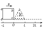 如图,有一个等腰三角形的匀强磁场区,其底边长为L,高为L,磁场方向垂直纸面向外,磁感应强度大小为B。一边长为L、总电阻为R的正方形导线框abcd,从图示位置开始沿x轴正方向以速度v匀速穿过磁场区域。取沿a→b→c→d→a的感应电流为正,则下图中表示线框中电流i随bc边的位置坐标x变化的图象正确的是