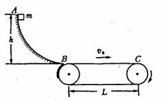 24.(14分)如图所示,一质量为m的滑块从高为h的光滑圆弧形槽的顶端A处无初速度地滑下,槽的底端B与水平传送带相接,传送带的运行速度为v0,长为L,滑块滑到传送带上后做匀加速运动,滑到传送带右端C时,恰好被加速到与传送带的速度相同.求: