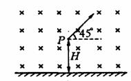 (2)若某时刻微粒运动到到场中距地面高度为H的P点,速度与水平方向成45°,如图所示.则该微粒至少要经多长时问运动到距地面的最高点?最高点距地面多高?