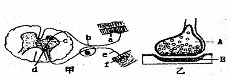 (1)甲图中f表示的结构是 ,乙图中的B是下。个神经元的 。