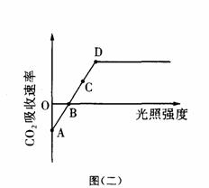 ⑵当光照强度处于图(二)D点之后,对应图(一)中的CO2的扩散途径有________(以字母表示)。