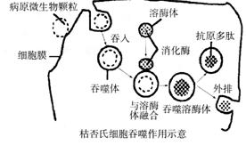 (4)肝脏里有一种数量较多的枯否氏细胞,它能吞噬、消化病原微生物(其吞噬过程如下图所示),这种免疫方式叫做 免疫,其中细胞识别的物质基础是 ,图中吞入和外排过程发生的结构基础是 。