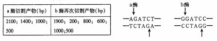 5.某线性DNA分子含有5000个碱基对(bp),先用限制酶a切割,再把得到的产物用限制酶b切割,得到的DNA片段大小如下表。限制酶a和b的识别序列和切割位点如下图所示。下列有关说法不正确的是