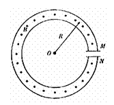 如图所示为一种获得高能粒子的装置。环形区域内存在垂直纸面向外,大小可调的匀强磁场。M、N为两块中心开有小孔的极板,每当带电粒子经过M、N板时,都会被加速,加速电压均为U;每当粒子飞离电场后,M、N板间的电势差立即变为零。粒子在M、N间的电场中一次次被加速,动能不断增大,而绕行半径R不变(M、N两极板间的距离远小于R)。当t=0时,质量为m,电荷量为+q的粒子静止在M板小孔处,