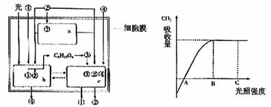 29.(16分)图1表示细胞代谢的某些过程,图2表示光照强度与二氧化碳吸收量的关系。请据图回答问题:(图中数字代表物质,a、b、c代表细胞器)
