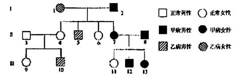 (3)若III-9和III-12婚配,子女中只患甲或乙一种遗传病的概率为 ;同时患两种遗传病的概率为 。
