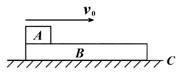 冲上质量 为M、长为l、置于光滑水平面C上的木板B,正好不从木板上掉下,已知A、B间的动摩擦因数为