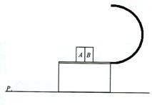 ,开始时A、B均处于静止状态,并且A、B间夹有少量炸药,炸药爆炸,使得A、B分别向左右运动,B滑块恰能运动到光滑半圆轨道的最高点,并最终落到水平地面上的P点,A从固定水平台滑落后也落在P点。(取