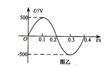 ,板间电压U随时间t呈正弦规律变化,函数图象如图乙所示,板间有垂直纸面向里的匀强磁场,磁感应强度为