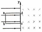 轴为界面,两边分别有水平向右和垂直纸面向里的匀强磁场,磁感应强度大小相同,现有一矩形线圈abcd平行磁场放置在左侧磁场中,且cd边与