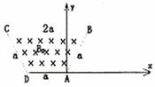 (19分)真空中有一等腰梯形匀强磁场区域ABCD,磁场方向垂直纸面向里,强度为B,且AD=AB=a,BC=2a,如图所示,建立沿DA边为x轴A为原点的直角坐标系,从A点在纸面内沿y轴正方向发射各种速率的电子,设电子间相互作用忽略,已知电子的电量为e,质量为m。