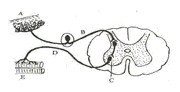 A.接受刺激的部位是E,兴奋在B上以电信号的形式传导