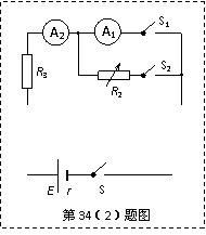 c.断开S1,保持S闭合、R1不变,再闭合S2,调节电阻箱R2,使电流表A2的示数 ,读出此时电阻箱的示数R2 ,则电流表A1内电阻 r=