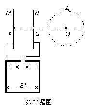 (18分)如图所示,一对平行放置的金属板M、N的中心各有一小孔P、Q,PQ连线垂直金属板;N板右侧的圆形区域A内分布有方向垂直于纸面向外的匀强磁场,磁感应强度大小为B,圆半径为r,且圆心O在PQ的延长线上,两平行金属板与匝数为n,边长为a的正方形线圈相连,现有垂直于线圈平面均匀增大的磁场,磁感应强度变化率为