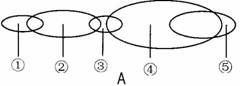 A.图A中①一⑤依次表示:维生素、脂质、激素、蛋白质、酶物质