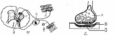 A.图甲所示结构可以完成某一反射活动,兴奋的传递方向依次是abcdef;当刺激b时,兴奋的传递方向却是双向的。