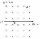 22.(20分)如图所示,在真空中坐标xOy面的x>0区域内,有磁感应强度B=0.20T的匀强磁场,方向与xOy平面垂直向里。在x轴上的P(10,0)点处有一放射源,在xOy平面内向各个方向发射速率为v=1.0×106m/s的带正电粒子,粒子的质量为m=6.4×10-27kg,粒子带电量为