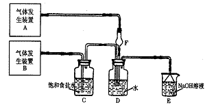 (1)该化学兴趣小组的同学为制取Cl2、SO2气体,现采用Na2SO3与70%的浓硫酸为原料常温下制取SO2,采用MnO2和浓盐酸(12 mol·L-1)为原料制取Cl2。在此实验中,F仪器的作用是: ;发生装置B应选择以上三种装置中的 (选填序号)。