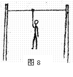 19、在第十一届全运会单杠比赛中,有一个动作是单臂大回环,如图8,其难度险度令人惊叹。假设运动员质量为m,单臂抓杠悬挂时手掌到人体重心的距离为L则运动员单臂回转过程中,若不考虑手掌与杠间的摩擦力影响,在从杠顶倒立转绕至最低点过程中,下列分析正确的有 ( )