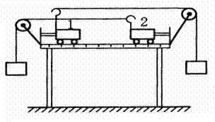 (18分)(1)在“探究加速度与力、质量关系”的实验中,某实验小组采用了如图所示的装置,在水平桌面上停着两辆小车,小车1和小车2的质量分别为M、2M,静止在小桌的左右两侧。两车都与绕过定滑轮的轻绳相连,绳的另一端系有质量均为m的物块。现将两车同时由静止释放,m远小于M,则到两车相碰时,小车1和小车2各自发生的位移大小之比为