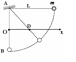24、(18分)如图所示,质量为m的小球,由长为L的细线系住,细线的另一端固定在A点,AB是过A的竖直线,O为AB上的一点,且AO=0.5L,过O作水平轴Ox,O为坐标原点,在Ox轴上钉铁钉D,若线能承受的最大拉力是9mg,现将小球拉直水平,然后由静止释放,若小球能绕钉子在竖直面内做圆周运动,不计线与钉子碰撞时的能量损失.求钉子位置在Ox轴上的取值范围.