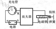 19.如右图所示,是工业生产中大部分光电控制设备(如夜亮昼熄的路灯)用到的光控继电器的示意图,它由电源、光电管、放大器、电磁继电器等几部分组成。当用绿光照射光电管阴极K时,可以发生光电效应,则下列说法正确的是