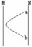 D.N中通有自下而上的恒定电流,带负电的粒子从a点向b点运动