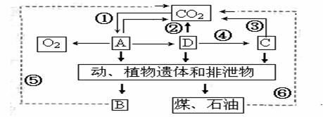 29.(10分,每空1分)反常天气纷现世界各地,凸现严峻的全球气候变暖趋势,其主要原因与碳循环不平衡有关。下图是生态系统中碳循环模式图,据图回答下列问题: