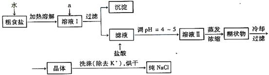 ⑴粗食盐常含有少量K+、Ca2+、Mg2+、Fe3+、SO42-等杂质离子,实验室提纯NaCl的流程如下: