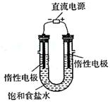 ⑶电解饱和食盐水的装置如图所示,若收集的H2为2L,则同样条件下收集的Cl2 (填“>”、“=”或“<”)2L,原因是 。装置改进后,可用于制备NaOH溶液,若测定溶液中NaOH的浓度,常用的实验方法为 。