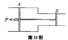 15.题15图所示,一水平固定放置的绝热气缸,由截面积不同的两圆筒连接而成,绝热活塞A、B用一刚性细杆连接,它们只能在各自的筒内无摩擦地沿水平方向左右滑动A、B之间封闭着一定质量的理想气体,现用力F1拉活塞A,使它们向左缓慢移动。在这个过程中,下列说法正确的是 ( )