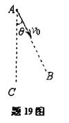 19.如题19图所示,在竖直平面内有匀强电场(图中未画出),一个质量为m带电小球,从A点以初速度v0沿直线AB运动。直线AB与竖直方向AC的夹角为