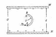 的绝缘光滑半圆形管道,管道圆心O在两板间中心(即圆心O到上、下板距离相等,到板左、右端距离相等)。现有一质量为m、带正电荷、电量