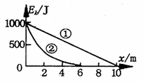 自动充电式电动车的前轮装有发电机,发电机与蓄电池连接。当骑车者用力蹬车或电动自行车自动滑行时,自行车就可以带动发电机向蓄电池充电,将其它形式的能转化成电能储存起来。假设某人骑车以1000 J的初动能在粗糙的水平路面上滑行,第一次关闭自动充电装置,让车自由滑行,其动能随位移变化关系如图线①所示;第二次启动自动充电装置,其动能随位移变化关系如图线②所示,则第二次向蓄电池所充的电能是
