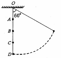 16.一根长为l的细绳,一端系一小球,另一端悬挂 于O点,在O点正下方A、B、C三处先后钉一光