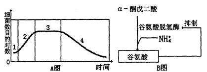 4.用某种培养基培养谷氨酸棒状杆菌,测得其生长曲线如图A所示。谷氨酸是谷氨酸棒状杆菌的代谢产物之一,其合成途径如图B所示。下列有关叙述,错误的是