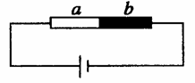 两根不同金属导体制成的长度相等、横截面积相同的圆柱形杆,串联后接在某一直流电源两端,如图所示,已知杆a的质量小于杆b的质量,杆a金属的摩尔质量小于杆b金属的摩尔质量,杆a的电阻大于杆b的电阻,假设两种金属的每个原子都提供相同数目的自由电子(载流子)。当电流达到稳恒时,若a、b内存在电场,则该电场可视为匀强电场,下面结论中正确的是