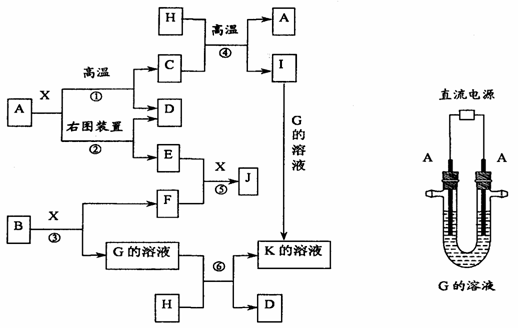 (2)写出用A作电极电解G溶液,在电极上生成E的反应式:______________________,