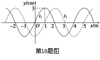 18.一简谐波在如图所示的x轴上传播,实线和虚线分别是t1=0和t2 =0.2s时刻的波形图.则