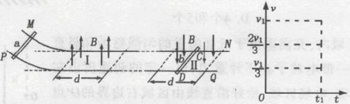 ,方向相反的匀强磁场Ⅰ、Ⅱ处于导轨的水平部分,磁场方向与导轨平面垂直。两根质量均为