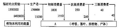 5.下图为生态系统中食物链所反映的能量流动情况,图中箭头表示能量流动的方向,单位为kcal(m2·a)。下列说法错误的是 ( )