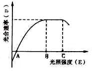 (3)下图表示温室内光照强度(E)与作物光合速率(v)的关系。在温度、水分和无机盐均适宜的条件下,当E<B时,增大光合速率的主要措施是____________;当B<E<C时,限制作物增产的主要因素是____________;当E>C时,可采取____________措施,保证作物的最高.考.资.源.网大光合速率,如遇连阴天,温室需补光,选用____________光最高.考.资.源.网有效。