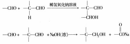 以两种一元醛(其物质的量之比为1∶4)和必要的无机试剂为原料合成B,写出合成B的各步反应的化学方程式。