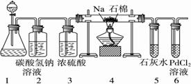 (4)某同学根据Mg与CO2反应原理,推测钠也应能在CO2中燃烧。为了确定其生成产物并进行实验论证,请你参与以下研究过程。该同学按实验要求,用下列装置进行实验(已知PdCl2溶液能被CO还原得到黑色的Pd),请完成下列问题: