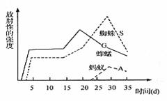 34.(9分)在一堆垃圾有机物中检测到放射性,随后在附近的植物中检测到放射性而此时周围空气环境中检测不出放射性,接着在其周围生活的动物体内也检测到放射性。动物体内放射性的强弱情况见图